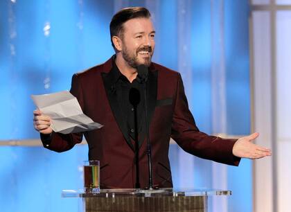 Jugando con su doble papel de estrella y forastero, el actor y guionista que se hizo conocido por crear y protagonizar The Office –historia a la que volvió éste año gracias al telefilm Life on the Road que está dirigiendo para la BBC–, Gervais regresa después de que Tina Fey y Amy Poehler tomaran la posta por tres años. Tan talentosas como él –tal vez más–, las comediantes tampoco se ahorraron guiños y comentarios filosos pero nunca se animaron a morder hasta casi arrancar la mano que las contrató. Un prurito que su colega británico nunca tuvo.