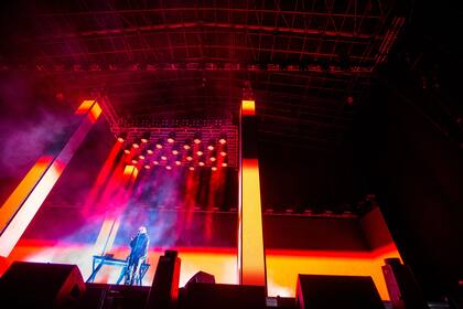 En escena el arquitecto Sergio Lacroix (el mismo diseñador que hizo la puesta de Babasónicos en este mismo escenario) armó una especie de cuadrilátero con cuatro columnas de leds, que permitió cortar el gran escenario al medio y hacer foco en Paulo Londra y su productor y amigo Alan Tejeda. No hay nadie más sobre el escenario. Para el público con eso alcanza. Solo necesitan de los beats y la voz melodiosa de Paulo, que conecta con ellos, a través de la sencillez y el carisma.