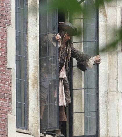 Johnny Depp, caracterizado como su personaje en Piratas del Caribe, rodaba escenas de la nueva entrega de la película cuando recibió una carta de una niña y decidió visitarla en la escuela