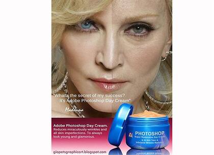 La gente crece, le salen arrugas... Envejece, en una palabra, eso no está ni bien ni mal, simplemente sucede. A Madonna también le pasa, pero cuando es convocada para ser la cara de algún producto, las cabecitas pensantes detrás de la misma quieren el nombre de Madonna, pero no su piel real. Por eso en la web circuló esta broma sobre la artista, donde expusieron el antes y después de su rostro o mejor dicho con y sin Photoshop.