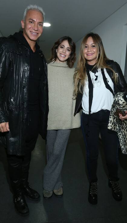Vestida por Evangelina Bomparola para el show, salió luego a saludar a sus invitados con un look super casual y posó sonriente con Flavio y Karina.