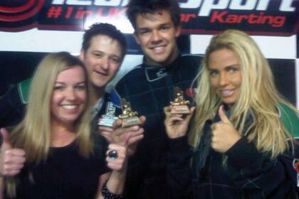 El ex "bañero de Marley", Leandro Penna,se llamó al silencio en medio de los rumores de compromiso entre él y su novia hipermediática inglesa, Katie Price. Mientras tanto, sigue mostrando en Twitter su vida de pareja feliz: subió una foto con Katie y unos amigos después de una carrera de karting. "Nos divertimos mucho con los chicos y amigos. Salí tercera y Leo, primero", contó su novia en la red social.