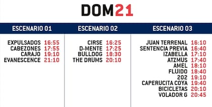 Todas las bandas comenzarán puntualmente por lo que recomendamos llegar temprano para evitar largas colas y poder disfrutar de los entretenimientos que el evento ofrece.