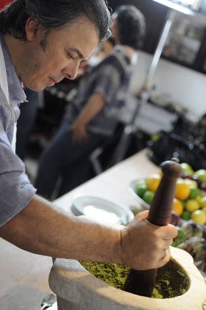 Desde los 21 años pulula por los restaurantes favoritos de las celebrities. Cocinó para Al Pacino, Madonna, Robert de Niro y supo absorber la disciplina que le exigían los chefs más destacados del ambiente. "Cuando se trata de celebrities todo sucede como un relámpago. La comida tiene que tener impacto visual, pero tiene que haber inmediatez en la preparación. En estos ambientes siempre hay acelere a la hora de sentarse a la mesa. Porque después hay una sesión de fotos, hay que tomar un avión, hay que maquillarse...El cocinero tiene que organizar todo eso". Pone en su voz el modo "acelerado" y enumera las actividades que podían suceder en un día con los famosos: "La hora del té, el masajito, todos a la pileta, todos a la limo para ir a la premier, después a la cena, después al helicóptero para ir al recital de Elton John, después preparar el champagne, brindar con Elton John, otra comida, y volver". Pausa. "Fue una experiencia muy linda", concluye con una fuerte carcajada.