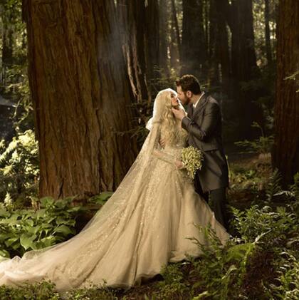 Ella vistió también al novio que posó con su espectacular esposa en esta imagen, colgada por ella misma en su perfil de Facebook (fue tomada por el fotógrafo Mark Seliger). Alexandra lució un modelo de Elie Saab, cuajado de pedrería, que la hacía parecer una auténtica princesa. Presente en la ceremonia estuvo la hija de la pareja, Winter, que tiene apenas 5 meses, y la lista de invitados incluyó otros ilustres nombres como Sting y su mujer Trudie Styler, Sean Lennon, Emma Watson, el batería de Metallica Lars Ulrich y la actriz Allison Williams, entre otros. Una cita en la que los detalles estaban medidos al máximo y que envolvió la velada en romanticismo y fantasía. El reverendo John Buehrens ofició una ceremonia en la que Preston Bailey puso las flores y el catering corrió a cargo de Paula le Duc w/ Big Sur Bakery. La torta era de Perfect Endings.