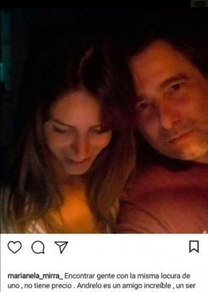 Pero parece que dicen mucho menos de lo que en realidad pasa. En las últimas horas, Mirra publicó en Instagram una foto en la que se la podía ver muy cerca del cantante, con las luces bajas y clima de mucha intimidad. "Encontrar gente con la misma locura de uno no tiene precio. Andrelo es un amigo increíble, un ser especial, un crack de la música y de la vida", escribió ella, llena de inspiración. Sin embargo, minutos después, decidió borrar el posteo sin dar mayores explicaciones.