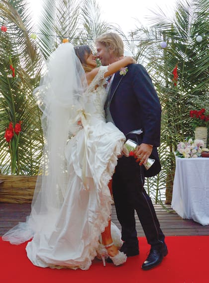 La semana estuvo llena de emociones. La noche previa al civil la pasaron en vela, charlando y agradeciendo la felicidad de haber formado una familia divina. Después, Facu invitó a María a volar en avión, y vieron el amanecer desde el aire. Una vez de vuelta en el aeródromo, fueron directo al Registro Civil de Tigre, y aunque su turno era más tarde, pudieron adelantarlo pidiéndoles a dos desconocidos que salieran de testigos. La mañana del sábado la dedicaron a cumplirles la fantasía a sus hijos. Ellos pedían que se casaran, querían ver si era "como en los cuentos". Con todo el amor de padres, María se puso el traje más escenográfico que encontró en el atelier de De la Canal y Facu se vistió de príncipe con sable incluido. Delante de sus "cachorros", se juraron amor eterno. El broche final lo dio una amiga de Mary, que se disfrazó de sirena y apareció en un bote cantando. Eso sí: la voz bellísima que salía por los parlantes la había grabado Paula, la hermana de Facu, una talentosísima cantante lírica que, además, cantó el "Ave María" en la ceremonia. ¿Los chicos? Quedaron fascinados, y la "sirenita" hasta les llevó un cofre con regalos de sus padres.