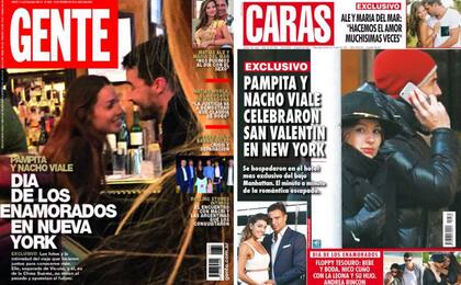 Hace semanas que circula un rumor que parece salido del guión de una telenovela: tras separarse de Benjamín Vicuña y luego de un escándalo por la aparición de una supuesta tercera en discordia, la China Suárez , Pampita Ardohain estaría iniciando un romance con el ex de la China, Nacho Viale . ¿Demasiado complicado para ser real? Pues, al parecer, no. La realidad todo lo puede y según retratan en sus portadas las revistas Gente y Caras, Pampita y Nacho estuvieron juntos en Nueva York, muy acaramelados, festejando San Valentín.