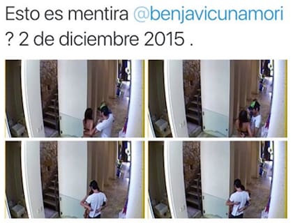 "Esta es la familia que destruiste", escribió la modelo como epígrafe de una foto en la que se la ve abrazada junto con uno de sus hijos y su ex pareja. También, tuiteó otra imagen similar y con un mensaje directo a Vicuña le preguntó: "¿Esto es mentira?".