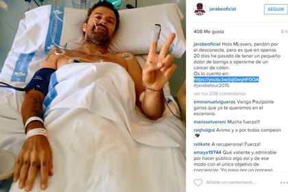 "Todo empezó con un dolor de barriga. En veinte días pase de unas pequeñas molestias a operarme de cáncer de colon", explica el artista. "Aunque casi por accidente, en mi caso llegamos a tiempo. Me han quitado el bicho y el médico me ha dicho que, de momento, a descansar", continúa."Para este año ya no va a poder ser, pero para el próximo año, nos vemos en el escenario", concluye el cantante. La banda canceló más de 30 conciertos que tenía previstos en España y América.