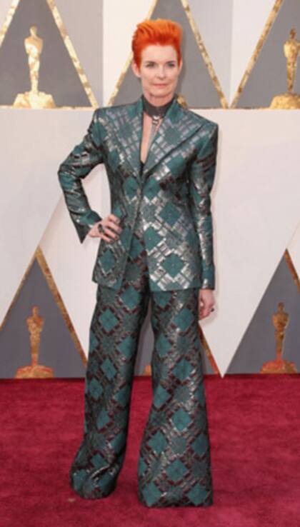 La diseñadora Sandy Powell fue una de las más llamativas de la alfombra roja de la entrega número 88 de los Premios Oscar 2016. Powell optó por un modelo con el que pareció homenajear a David Bowie, quien murió semanas atrás. Así como Lady Gaga lo hizo como Ziggy Stardust en los premios Grammy, la diseñadora hizo algo parecido.