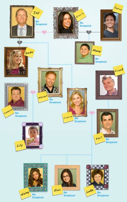 2. La idea de la serie es, justamente, que no sea una familia ordinaria. Por eso, a algunos, sobre todos los que comenzaron a ver la serie tarde, necesitan ayuda para entender cómo son las relaciones de los Dunphy, Pritchett, Delgado... ¿Cómo es el árbol familiar moderno? Pasen y vean.