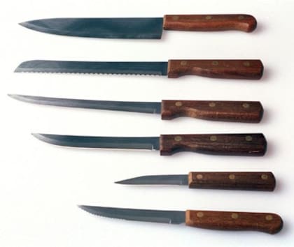 Cortantes. Allí encontrará cuchillos, con hoja de acero inoxidable de unos 20 cms de largo, y mango de plástico. Su precio no debería superar los $50, pero si lo desea, puede pagar 10 veces eso con toda tranquilidad. Dos de distinto tamaño serán suficientes. Y ya que estamos hablando de cortar, le cuento que a mí me gusta tener una tijera en la cocina, que tiene que ser un poco rústica, como aconseja Lilian Goligorsky en su libro "Cocina para solos y solas", que le recomiendo.
