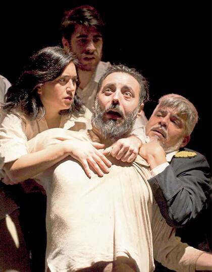 El espacio escénico cuenta con algunas postas: mesa, vitrina y mostrador que se resignifican a lo largo de la pieza. Cada zona muestra un revés, algo que ocultar y que hace sentido con la clandestinidad en la que viven los personajes. Una Ifigenia (Flavia Bagdadi) hace uso de su famosa maldición: predice lo que vendrá sin ser escuchada. Ese gesto trágico enmarca la pieza, si bien lo que se verá está en tono de comedia, hay algo del destino marcado que estará presente. La anécdota atraviesa el derrotero de una comuna que quiere armar un mundo nuevo desde un lugar escondido. Temen ser traicionados y muestran al espectador que sus ambiciones en nada se corresponden con las condiciones en las que se encuentran. Los movimientos corales muestran un gran trabajo de la dirección de Aníbal Gulluni, si bien el texto es enrevesado y por momentos el interés por la anécdota decae, se ve que el proceso ha estado orientado al trabajo con los actores. Ellos, los músicos que abren guiños constantes y una divertida batería de recursos escénicos tomados de géneros populares, hacen que la sorpresa mantenga siempre interesada a la platea.