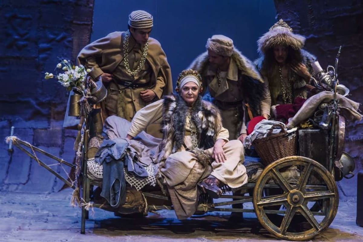 Los clásicos, sin embargo, son elásticos, flexibles y sobre la escritura dramática pueden inscribirse múltiples puestas en escena. Pero estas son firmadas por el director. Este prolegómeno tiene sentido porque Madre Coraje, dirigida por José María Muscari, está lejos de plantearse como una puesta arqueológica. Desde el vestuario de Magda Banach, que se inicia con marcas de lujo y ostentación para devenir en harapos con el correr de los años transcurridos, y que, además, no está trabajado desde una perspectiva referencial, sino lúdica, sobre todo en los personajes que no son protagónicos; el espacio escénico que a través de la economía de signos multiplica de manera constante los significados y que se transforma con el diseño lumínico combinando la belleza y la provocación de distintos estados expresivos, sin olvidar el carromato que no tiene la forma que podría esperarse: todo se orienta a una estilización como rasgo predominante para articular el sistema.