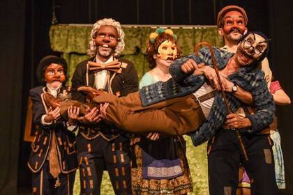 Detrás de esa puerta en esa calle un poco perdida, ahí nomás de todo, pero no tan a la vista, se encuentra un espacio que fue creciendo año tras año hasta volverse francamente hermoso. Entrar al Espacio Aguirre, aquel que supo desarrollar el reconocido clown Marcelo Katz, es ya una experiencia en sí misma. Hostería Beninger, autoría que comparte con su compañero de ruta creativa, Martín Joab, y que él mismo dirige. Para despistados, el tardío horario de funciones avisa de alguna manera que esta obra no es para niños. Aunque Katz es un maestro de los espectáculos que pueden ser vistos por la mayoría y de todas las edades, en este caso los niños pueden quedarse afuera. No es que su temática sea prohibitiva o los procedimientos no admitan al público más pequeño, pero transita por zonas un poco más inquietantes. Algo del espíritu de Wes Anderson podría sobrevolar esta pieza. Un hotel en medio de la nada con un pasado esplendoroso ha perdido todo su glamour. De aquellas 88 habitaciones quedan funcionando solo ocho, "pero con la misma excelencia", aclara el mayordomo más fiel de todos. El presente alicaído de la hostería ocasiona una afluencia cada vez más pobre de huéspedes. Pero a medida que avanza la acción aparece el verdadero pero escondido secreto de este lugar, que de hacerse popular podría poner en riesgo su esencia. Contar más sería una pena. Alcanza con decir que ahí nomás de la hostería se encuentra un lago con propiedades fantásticas. Un combo de misterio y milagro que por momentos abre y abre más historias haciéndole perder fuerzas a la principal.