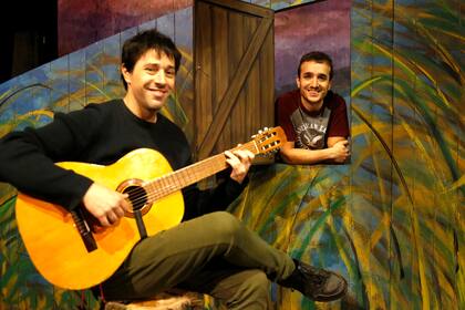 Tanto Emiliano Dionisi (32) como Julián Midón (41) se nutren de raíces midonianas, obvias en el caso del músico, que, más allá de haber actuado solamente como niño en las versiones televisivas de Vivitos y coleando, cuenta en su haber con largas conversaciones con su padre, aun cuando es la primera vez en que se involucra activamente en la puesta en escena de una obra. Al frente de cinco músicos se instala sobre el escenario para tocar en vivo la partitura compuesta por Carlos Gianni. "Eso implica otro tipo de arreglos musicales, para una instrumentación acotada", señala Julián Midón. Y agrega: "Mantuvimos los cambios de estilo característicos de Gianni; aparece por ejemplo una cumbia y le sigue un rap, con el que fuimos a fondo".
