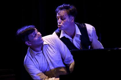 Del circuito off Broadway al Cultural San Martín es uno de los tantos recorridos de Asesinato para dos, este musical de bolsillo en el que, en 90 minutos, un actor investiga un crimen, el otro interpreta a doce sospechosos y los dos tocan el piano parodiando las míticas novelas de Agatha Christie.