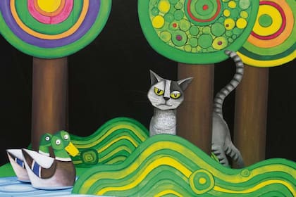 Entre las aspiraciones amorosas del gato y el coqueteo alegre y un tanto burlón de la golondrina se interpone el ruiseñor, proponiendo con su canto de vuelo gardeliano un romance más "sensato". De páginas variopintas salen vaca, oveja, pato y gallina graznando y mugiendo los prejuicios y lugares comunes, subrayando la inconveniencia de un amor entre gato y golondrina.