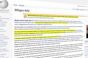 Empezamos a revisar los cientos o miles de entradas de la enciclopedia online sobre la historia argentina y vimos que habían sido objeto de una revisión sistemática, para alinearlas con el “relato”, en lo grande y en lo chico. A veces, eran textos completos. Pero en la mayoría de los casos se conservaba el original –serio y neutro–, agregándole un primer párrafo que redefinía al personaje o episodio. Otras veces se trataba de párrafos intercalados, o simplemente del agregado de un par de palabras clave, que cambiaban el sentido.