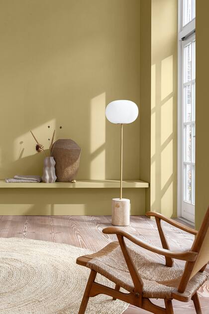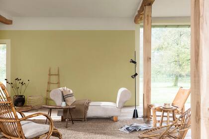 Silencio de invierno es el color del año, según Alba. Inspirado en las flores secas y en los campos, promete una sensación acogedora, de bienestar y una mayor conexión con la naturaleza. Es un verde otoñal, desaturado y que invita a la calma. “El verde del año es un tono neutro, no va a cansar los ojos, sino que te va a abrazar. Mi sugerencia es mezclar más de un color. Si no te gusta hacerlo en las paredes, queda bien el techo colorido. Esa es una tendencia global”, agrega.