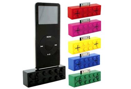 Este reproductor de MP3 tiene todos sus botones (encendido, play, pausa, control de volumen, entre otros) con la estética de los encastres del clásico juego de bloques. Su batería dura hasta 6 horas y cuenta con su propio slot micro SD (2GB máximo).
