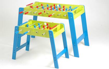 Metegol realizado en MDF laqueado. Grande, $ 855; chico, $ 418. |