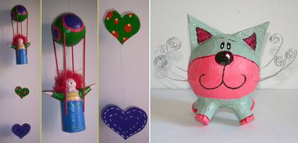Móvil Aerostático + Corazones, $38. Gatito de colores, $30. |