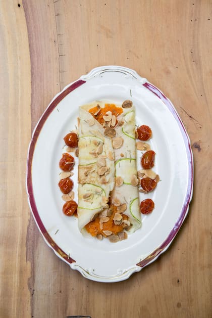 Crêpe relleno de calabaza con masa impresa con zucchini