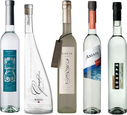 Originaria del norte de Italia, de la ciudad de Bassano de Grappa, es un aguardiente tan antiguo como universal que se obtiene por destilación de los orujos de uvas en alambiques. Tiene alta graduación, entre 40 y 50% de alcohol, y hay de varios tipos: varietales, blends, jóvenes, añejas y con o sin madera. En general son transparentes, aunque en algunos casos envejecen en toneles y adquieren un color ambarino, y su sabor (igual que el del vino) varía mucho y depende de las calidades y variedades de uva. En nuestro país la introdujeron los inmigrantes italianos en el siglo XIX y hoy está viviendo una especie de resurgimiento como bebida sofisticada desde que algunas bodegas comenzaron a elaborar versiones de alta gama con varietales de orujo seleccionados de Malbec, Merlot, Syrah y Cabernet Sauvignon. Aquí, cinco grapas nacionales de altísima calidad.