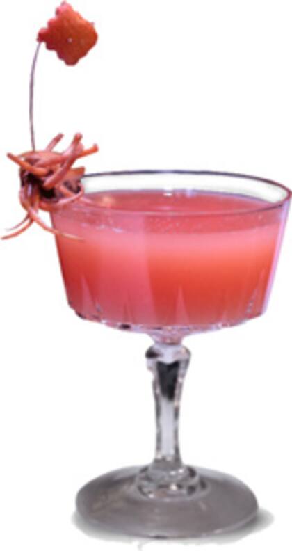 Preparación: Agregar todos los ingredientes en una coctelera y batir vigorosamente, luego servir sin hielo, en una copa martini previamente enfriada. Una piel de pomelo rosado exprimida sobre la preparación permitirá obtener el aceite de la cáscara dejando muy perfumado todo el cocktail. Para obtener almíbar de canela, hervir partes iguales de agua y azúcar junto a unas cuantas ramitas de canela. Para obtener 1/2 litro de almíbar: 500cc agua, 1/2 kg de azúcar, 7 a 10 gr de ramas de canela. Decoración ( garnish ): cortar cáscara de pomelo en finas tiritas en forma de Pelitos y algunas ramitas de canela.