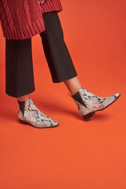Las de Blaquè, con taco bajito y un reptil sofisticado, ideal para llevar con un palazzo y un cárdigan de punto grueso.