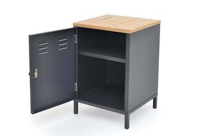 Fabricado en chapa terminada con pintura epoxi en polvo y horneada, el Cabinet Paraíso de Temple Furniture tiene tapa de madera y puede elegirse con su estructura en negro, blanco, gris, rojo, amarillo, naranja, azul, verde o transparente. Mide 37.5 cm de ancho, 37.5 cm de profundidad y 55 cm de alto. “Tiene un diseño de líneas muy simples, con una apariencia industrial y a la vez cálida, gracias a la combinación de la chapa con la tapa de madera. Es ideal como mesita de luz o para acompañar un sillón en el living”, explica el diseñador industrial Federico Montelli Yanzi.