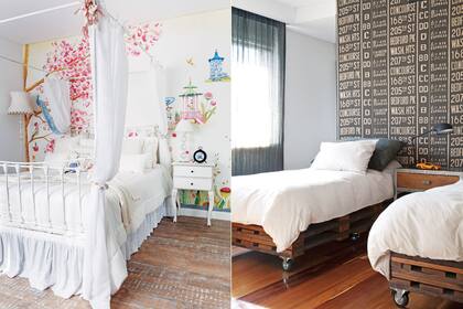 TELÓN DE FONDO. Un muro empapelado, entelado o pintado le da carácter a un cuarto: ya sea un romántico paisaje oriental en una habitación súper femenina o la grilla de paradas de un tren en un cuarto con onda industrial, el resultado es de alto impacto. Si elegimos empapelar la pared sobre la que se apoya la cama, podemos prescindir de la cabecera y usar tonos neutros para el acolchado. Cuando llegue el momento, basta con sacar o reemplazar el papel para cambiar el estilo por completo.