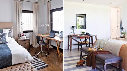 EN EL CUARTO. Algunos prefieren destinar un ambiente completo a su oficina en casa y compartirlo con la familia. A otros les parece mejor y más realista que cada uno tenga su pequeño espacio de trabajo en su dormitorio: tranquilo y con el estilo de su dueño. Puede ser a un lado de la cama, con muebles de diseño; en blanco laqueado y aprovechando un nicho en la pared; o bien en clave simple, debajo de la ventana. Todo vale.
