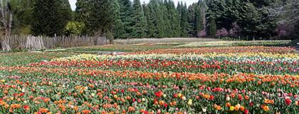 En una época se dedicaba al monocultivo de tulipanes, pero amplió el espectro y produce además galanthus, crocus, narcisos —en gran variedad e ideales para plantaciones naturalistas—, jacintos, liliums, y otras especies como peonias, helleborus, kniphofias, phlox, lirios germánicos. También está ensayando con enredaderas nativas, como la Mutisia y Cynanchum diemii. Otro de sus orgullos son las secuoyas que plantó hace 46 años en el lateral de uno de los campos de bulbos. Son más de 200 y tienen un tronco que supera el 1,5 m de diámetro.