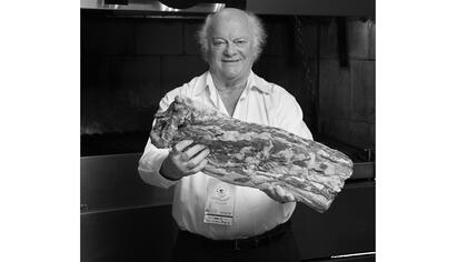 Para lograr un buen bife de chorizo primero tenés que ver que la carne sea rosadita, no muy roja. La carne roja ya tira a animal más grande. Yo suelo trabajar con animales más chicos, de 380 o 400 kilos. La porción ideal de un bife en una casa o en otro restaurante es de unos 300 gramos. El bife de chorizo que yo sirvo en mis locales es de 500 gramos. Para mí, ese espesor se cocina con un gusto especial. Si es muy finita parece una milanesa y no la podés hacer a punto. Me gusta la carne con cuerpo. En unos 25 minutos, con buen fuego, hacés un bife perfecto."