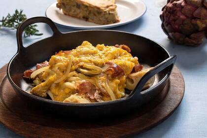 Platos. Lo más común es comerlos hervidos. Sin embargo, Florencia propone hacerlos a la plancha, confitados o fritos. Por eso, elaboró pascualina de alcauciles; alcauciles a la plancha con salsa holandesa y gremolata; revuelto gramajo de alcauciles, y ñoquis de ricota con pesto de alcauciles. Para probarlos, podes pedir que te lo lleven (4371-3561 / 1130668977) o los pasás a buscar por Los Galgos (Av. Callao 501).