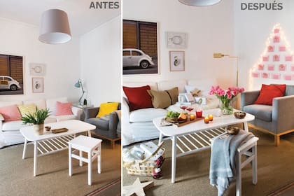 Con un par de detalles sutiles y rápidos, vestimos un living con onda nórdica para recibir las Fiestas