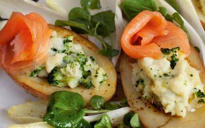 Papas con brócoli y salmón