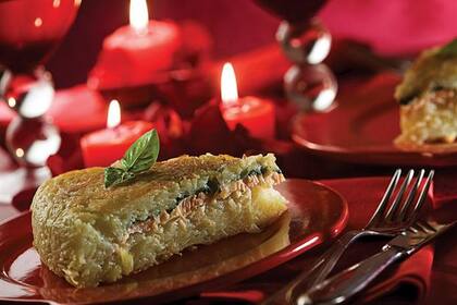 Gratén de papas, panceta y rúcula