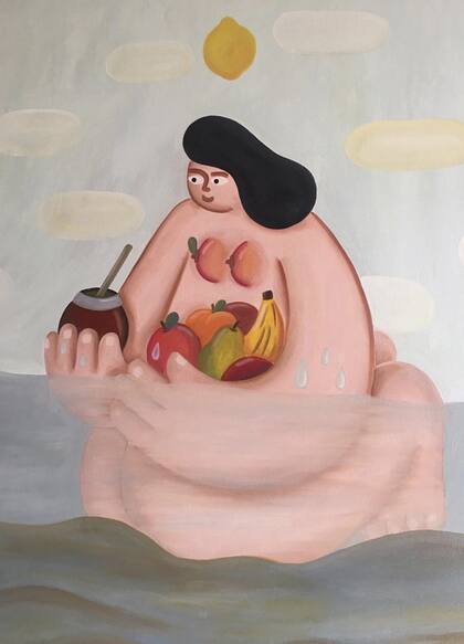 En sus cuadros, que forman parte de una nueva exposición en la Galería Mar Dulce, sorprenden evocadoras formas y universos que remiten a otros pintores de su devoción, como Fernando Botero o Tarsila do Amaral. Esas fuentes la motivan a jugar con formas, colores, cuerpos y geometrías, presentes en las series de la muestra, en las que se ven conexiones entre la mujer –gigante– y el bosque y la naturaleza.
