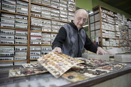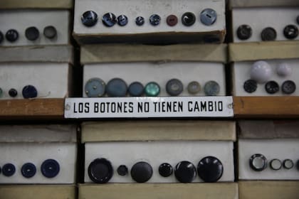 "Se me rompieron los botones de este traje con el placard", le cuenta un hombre que acaba de ingresar al local. Eduardo los mira detenidamente, toma una de las cajas, le enseña cada uno de los modelos y con gran destreza elige el tamaño correcto sin dudarlo. A su lado, se encuentra otra clienta con sweater color azul que acaba de terminar de tejerle a su nieto. "Eduardo, ¿cuántos botones me aconseja que le ponga?", dice mientras sostiene orgullosa la prenda. "Creo que con cinco botoncitos va a quedar muy bien", le responde. Para él es fundamental que el cliente le muestre la prenda para poder asesorarlo de la mejor manera. "Siempre elijo el botón como si fuera para mí. Me genera mucha satisfacción cuando vienen y se van conformes con el producto", dice. Hace poco realizó con botones quinientos pares de gemelos alargados para una empresa.