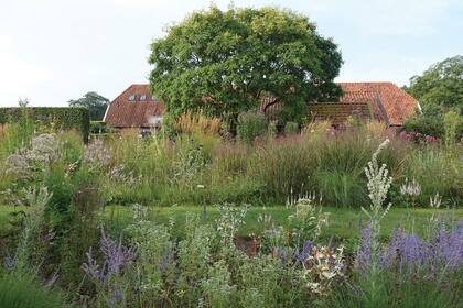 Piet crea jardines privados o públicos que son atractivos todo el año. Encuentra belleza tanto en los marrones, negros y grises de las cabezas de semillas secas y de las flores marchitas, como en las erupciones de colores que parecen bordadas como en una tela sobre campos de pastos.