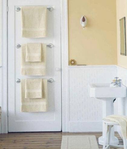 Más allá del gancho para colgar la toalla, muchas veces podemos poner barrotes para colgarlas o hasta sumar estantes para colgar más objetos.