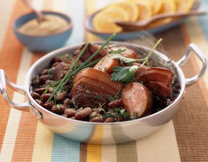 A Río le adjudican ser el lugar de origen de la feijoada. Se dice que los esclavos, destinatarios de los peores cortes de carne, los guisaban con los porotos para mejorar su ingesta. Otras versiones dicen que es una variedad del cocido portugués. El experto Luis da Cámara Cascudo tercia: "Lo que llamamos feijoada es una solución europea elaborada en el Brasil. Técnica portuguesa con material brasilero". Si bien generalmente se habla del feijao preto, también se puede preparar con otro poroto llamado mulatinho. Lo cierto es que el poroto figura, junto con la harina de mandioca, en las recetas brasileñas desde el siglo XVII.