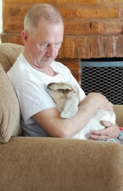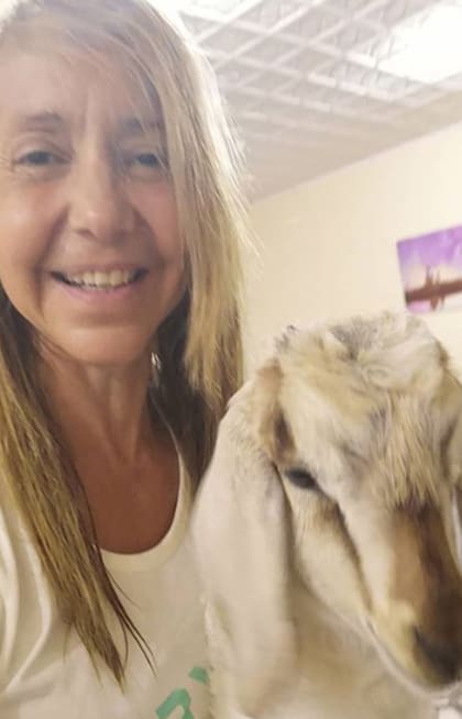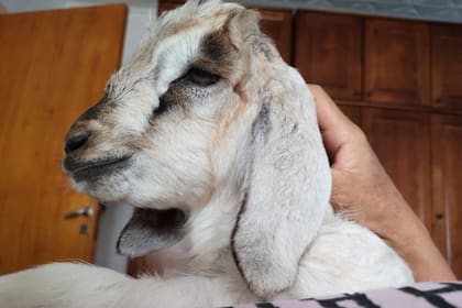 Pudo averiguar que se trataba de una cabrita que estaba encerrada en una jaula con una gallina Charata, en un baldío próximo a su casa. "¿Me la das? Hay que alimentarla porque es muy bebé", le dijo al dueño del lugar. "Cuando logré pasar al patio donde estaba la jaula, la vi muy delgada, llena de piojos y con el cordón umbilical fresco. Llamé al veterinario y me dijo que la sacara inmediatamente de allí y que me ocupara de que ganara peso. Lo más triste fue enterarme que su mamá había sido cuatreada. Nunca supe si ella había nacido antes o si, producto de la tortura, abandonó a la fuerza el vientre materno".