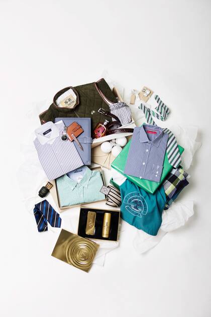 1- Chaleco matelassé de gamuza ($ 3390, La Martina); 2- Corbata de algodón y seda natural ($ 396, Giesso); 3- Cinturón de cuero croco ($ 236, Giesso); 4- Boxer brief ($ 169, Caro Uomo para Caro Cuore); 5- Eau de toilette Big Pony 4 ($ 475 x 125 ml, Ralph Lauren); 6- Camisa de vestir ($ 899, Rochas); 7- Carpeta de cuero A4 ($ 950, Rossi & Caruso); 8- Billetera de cuero con rabillo y doble tarjetero ($ 452, Rossi & Caruso); 9- Reloj Timewalker Twinfly (Montblanc); 10- Bolígrafo Starwalker Red Gold Plated Metal (Montblanc); 11- Camisa de vestir ($ 619, Christian Lacroix); 12- Eau de toilette Esencia ($ 559 x 100 ml, Loewe); 13- Camisa cuadrillé manga corta ($ 545, Lacoste); 14- Cinto de soga con hebilla de metal ($ 78, Kevingston); 15- Traje de baño escocés ($ 646, Columbia); 16- Traje de baño estampado ($ 450, Timberland); 17- Corbata de seda natural (desde $ 350, Daniel Hechter); 18- Cofre eau de toilette x 100 ml y desodorante One Millon ($ 515, Paco Rabanne)