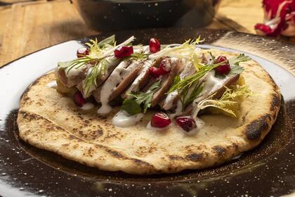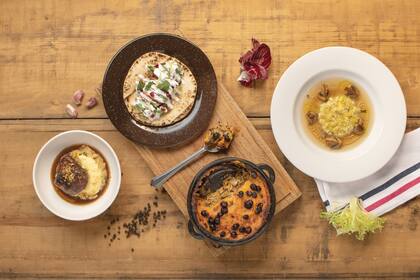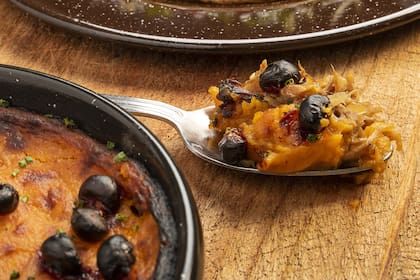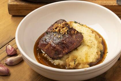 Cocciones. "Es un corte que requiere cocciones prolongadas, ideal para estofar o brasear y luego combinar con plancha, parrilla o ahumador". Para aplicarla, Guido preparó tortellone de carrillera ahumada, setas y caldo concentrado; relleno de un pan pita a la chapa; en pastel con boniatos y arándanos, y a las brasas con un puré cremoso de papas, jugo de cocción de cerdo y avellanas fritas.