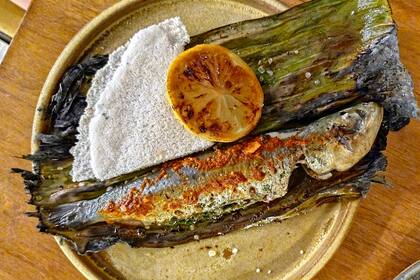 Dentro de los primeros, hay dos opciones: el más clásico amazónico, con pesca del día que suele ser lenguado; y el costeño, que sale cocido dentro de hojas de plátano con una salsa a base del tan peruano ají amarillo. Por su lado, la sardina es un arquetipo de plato veraniego: como si estuviésemos con los pies hundidos en la arena mirando el romper de las olas, llega a la mesa una sardina de unos 300 gramos, cocinada entera a las brasas y condimentada con limón, perfecta para caranchear esquivando (o comiendo) esas pequeñísimas espinas que son parte indisoluble del juego. Los cócteles de Carlo Cano (como el sorprendente Sachamama, con ron, huacatay, kabutia y mandarina) acompañan a la perfección.